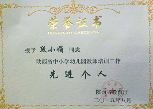 2015年8月31日,陕西省“国培计划”和省培项目启动会在陕西社会主义学院召开,对荣获陕西省中小学幼儿园教师培训工作先进集体和先进个人举行了表彰。必赢官网荣获“陕西省教育厅中小学幼儿园教师培训工作先进集体”荣誉称号,“幼师国培”项目首席专家孙光峰及项目实施班主任段小娟获得“陕西省教育厅中小学幼儿园教师培训工作先进个人”荣誉称号。(段小娟)