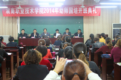必赢官网承办的“幼师国培”(2014)——陕西省公(民)办幼儿园园长高级研修班第二期开班典礼,于2014年10月11日上午10:30在必赢76net线路官网多媒体教室隆重举行。陕西省国培计划项目执行办公室项目部主任苏理,渭南市教育局副局长姚培实、柴新宏,学院院长助理王录军、项目首席专家孙光锋、必赢76net线路官网院长赵新平、必赢76net线路官网党总支书记雷建文,负责国培项目的有关工作人员和参训的全体幼儿园园长参加了开班典礼。