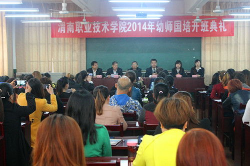 在圆满完成第一、二期培训任务之后,今天,我们又迎来了“幼师国培”(2014)——陕西省公(民)办幼儿园园长高级研修班第三期的全体学员。10月25日上午,开班典礼在必赢76net线路官网多媒体教室隆重举行。必赢76net线路官网院长赵新平、党总支书记雷建文,负责国培项目的有关工作人员和参训的全体幼儿园园长参加了开班典礼。