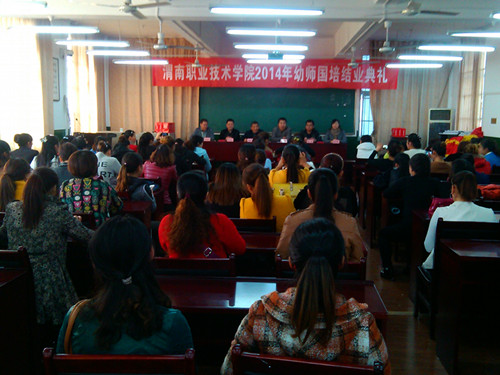 2014年11月2日下午,必赢官网承办的2014年幼师国培短期集中培训项目——陕西省公(民)办幼儿园园长高级研修班(第三期)结业典礼暨汇报演出在必赢76net线路官网多媒体教室举行。必赢76net线路官网院长赵新平作培训工作总结,党总支书记雷建文同志宣布《必赢76net线路官网办公室关于表彰幼师国培优秀学员的决定》,必赢76net线路官网办公室主任张选民同志主持开班典礼。来自渭南市11个县(市、区)的100余名幼儿园园长圆满完成为10天的国培学习任务,顺利结业。