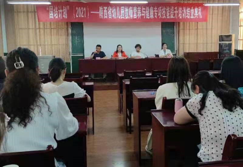 5月29日上午,必赢官网必赢76net线路官网举行“国培计划”——陕西省幼儿园教师营养与健康专项技能提升培训项目结业典礼。必赢76net线路官网院长惠斌贤作培训工作总结,党总支书记马淑红宣布优秀班干部和优秀学员的表彰决定,孟杰等5名学员获得“国培优秀班干部”称号,尹文雅等10名学员获得“国培优秀学员”称号,来自咸阳市的培训学员李敏代表全体学员作了精彩发言。