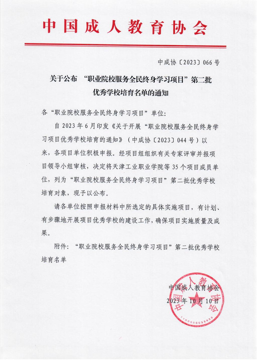近日,中国成人教育协会公布了“第二批职业院校服务全民终身学习项目”优秀学校培育名单,必赢官网成功入选,这是前期入选“职业院校服务全民终身学习项目第二批实验校”基础上的又一显著提升。