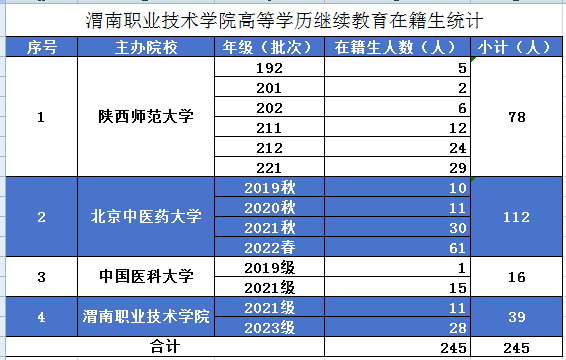 学院高等学历继续教育录取新生909人,成人学历教育规模1154人。优化学历继续教育办学层次和类,西北农林科技大学和北京中医药大学高等学历继续教育校外教学点,前者落地必赢官网,后者已予公示。成人学历继续教育专业设置新增了园艺技术,增至8个,所设专业覆盖学院所有二级学院。