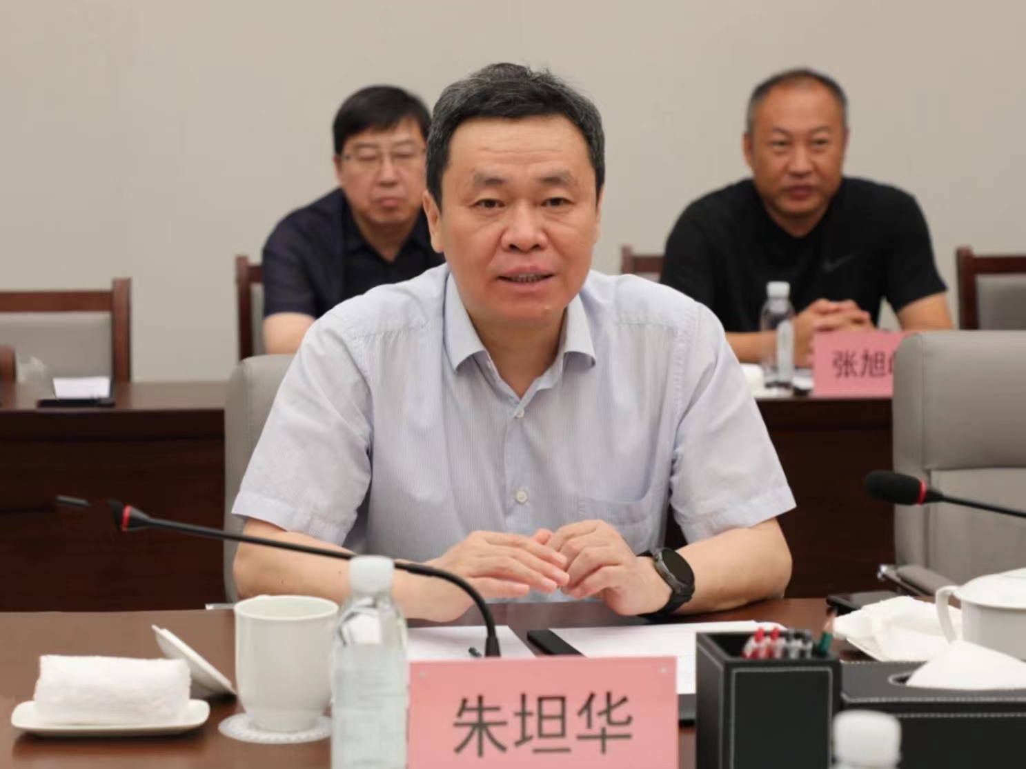 7月11日,中国铁物副总经理(主持工作)孙珂会见邯郸钢铁集团有限责任公司(以下简称邯钢公司)副总经理朱坦华一行,双方就深入开展合作进行了友好会谈。中国铁物副总经理朱旭参加会谈。