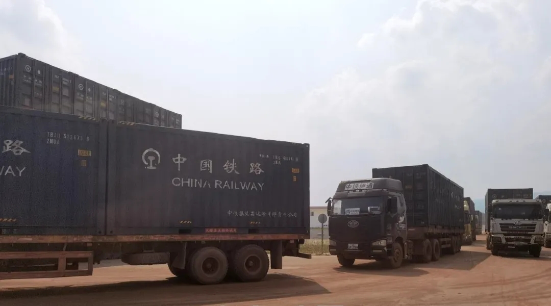 万象南站,货物列车缓缓驶入卸车股道,数十辆集装箱卡车列队等候;万荣站,一辆辆装载着铁矿石的集装箱卡车在作业人员指挥下陆续驶入货场;蓬洪站,两辆正面吊抓取集装箱繁忙穿梭于货物列车与堆场之间。身着橘红色工服、头戴红色安全帽的工作人员,顶着烈日坚守岗位、配合默契,在异国他乡展现出中国物流人良好的精神风貌和专业水平