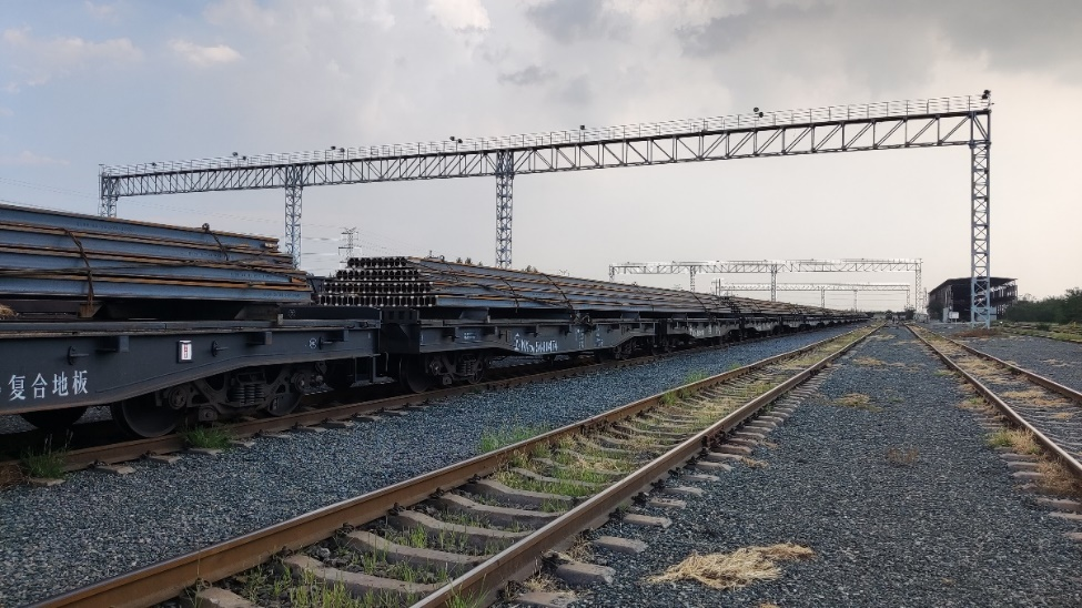 此次大批量的长大件、件杂货钢轨运输,在中欧陆路运输的国际联运历史上,尚属首次。由于25m长无孔、正反扣钢轨在哈萨克斯坦没有出口经验,我国缺少成熟发运方案,中国铁物物流团队不断推演试验、研讨换装方案、评测风险,为钢轨量身定制换装方案,通过吊具选用、翻轨工艺、吊装工艺、绑扎加固等,有效增强了钢轨从国内车板装卸换装到国外车板的安全性和稳固性,提高了装卸效率,降低了项目成本,确保了首批钢轨的顺利发运。