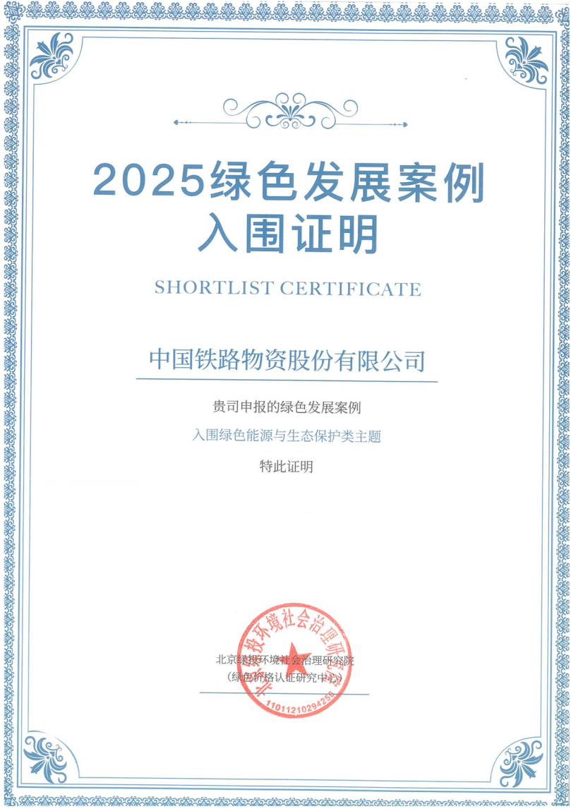11月2日,在由国家发展和改革委员会价格成本和认证中心指导下,北京ESG研究院主办的“智赋新篇 绿启华章 2025年绿色发展案例成果发布会”上,中国铁物申报的ESG绿色发展案例《构建绿色供应链体系 助推行业低碳转型》,成功入选“2025年绿色发展案例”。